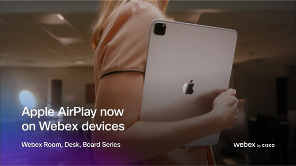 用过 AirPlay 电视投送功能的苹果用户,不久后也能够在会议期间,将屏幕内容轻松投放到上述思科 Webex 设备上、而无需费力使用线缆连接。