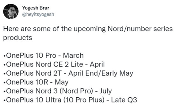 今年年初的时候,一加已经正式发布了新一代旗舰手机一加10 Pro,后续一加还会推出哪些新手机呢?外网有人发布了一份疑似是一加在海外市场的产品规划路线图,在2022年一加起码还将推出5款新手机。