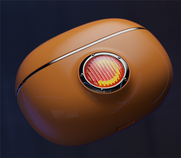 官方表示,这款耳机产品主要元素取自复古超跑中的圆形车灯,可以提示电量信息。