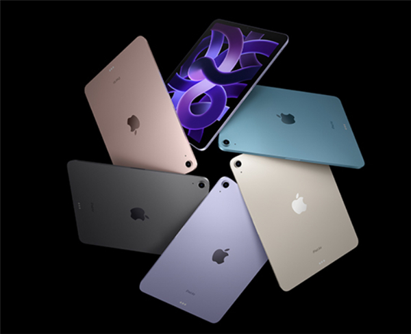 ID设计上,iPad Air 5延续上一代的设计语言,没有太大的变化,正面采用11英寸Liquid视网膜显示屏,支持P3广色域、原彩显示,500尼特亮度和抗反射涂层,带来深空灰、星光色、粉色、紫色、蓝色五款配色。