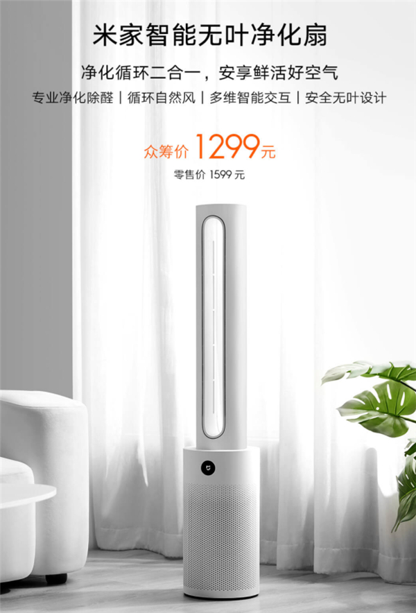 至于售价方面,它的定价为 1599 元,众筹优惠价则是 1299 元,算下来优惠力度还算不错,但性价比依旧比较一般。如果你同时需要无叶风扇和净化器,但家中能容纳智能电器的空间有限,那它还是能成为一个不错选择的。