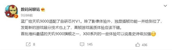 3月15日上午,有数码博主曝光了vivo X80系列的更多信息:系列机型有天玑9000版本,同时适配了自研芯片V1,不仅可以协助处理影像信息还可以对游戏完成插帧、稳帧操作,是首批堆料最猛的天玑9000旗舰之一。