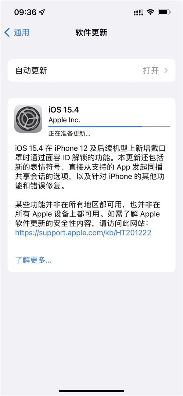 iOS15.4在iPhone12及后续机型上新增戴口罩时通过面容ID解锁的功能。本更新还包括新的表情符号、直接从支持的App发起同播共享会话的选项,以及针对iPhone的其他功能和错误修复。某些功能并非在所有地区都可用,也并非在所有Apple设备上都可用。