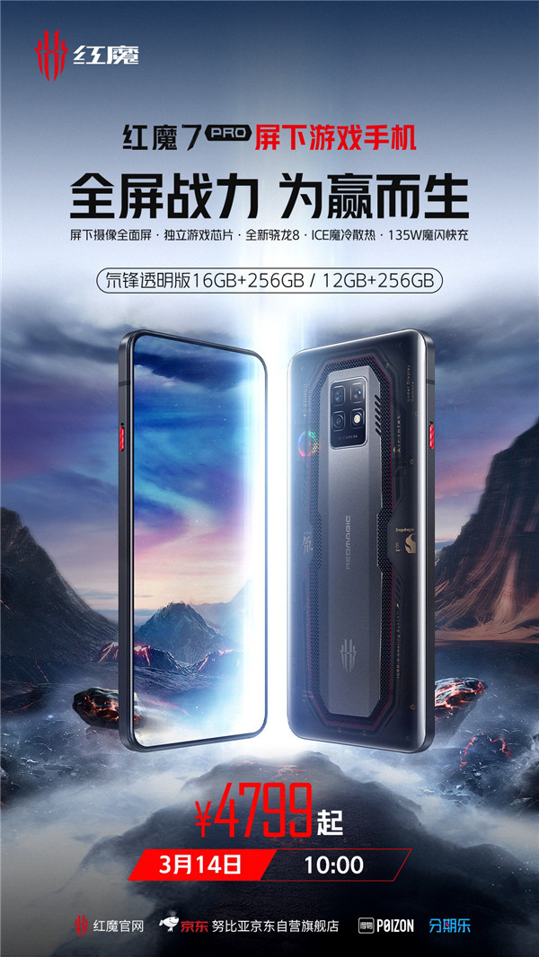 首款屏下游戏手机红魔7 Pro于上个月正式发布,标准版已经先行发售,而『氘锋透明版』官方宣布将于今日上午10点全平台正式发售,提供12GB+256GB/16GB+256GB版本,售价5299元起,感兴趣可关注。