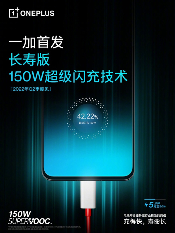 ️至于150W快充,这是OPPO前不久刚刚在MWC上发布的最新快充技术,从适配器、线材到手机都进行了重新优化设计,使其适应高功率,5分钟可将等效4500mAh电池电量充至50%,15分钟充至100%。