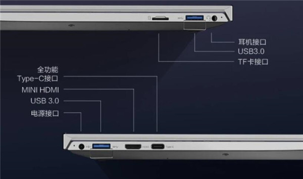 接口方面,攀升 SmartBook P1 Pro + 拥有 2 个 USB 3.0 接口、1 个 mini HDMI 接口、1 个电源接口、1 个耳机接口、1 个 TF 卡接口以及 1 个全功能的 Type-C 接口,全功能的 Type-C 接口支持数据、音频、视频、电力同时传输,可以使用一根线材代替多种使用场景,配合多种功能的拓展坞,可以实现随心所欲的扩展。