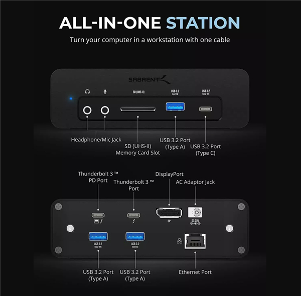 针对资深用户和内容创作者,Sabrent 公司推出了重量级扩展坞,最高支持 16TB 的 SSD 存储和大量连接选项。该基座专为时尚的 Windows 笔记本电脑和 MacBooks 设计,还可以连接到外部显示器,并配有一个专用的 150W 电源适配器。