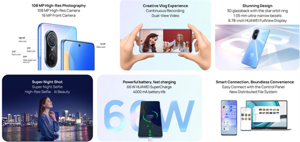 该机依旧由关晓彤代言,主打 Vlog 摄影,运行鸿蒙 HarmonyOS 系统,支持 4G 全网通,提供 8+128GB、8+256GB 两种存储版本以及幻夜黑、贝母白、冰晶蓝三个版本,预订可享 9.9 元加购华为手环 4e 的权益。