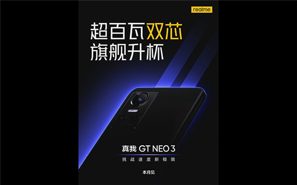 今天,realme正式官宣将在3月发布全新的真我GT Neo3系列新机,从官方海报宣传来看,真我GT Neo3系列将拥有超百瓦双芯的技术加持。