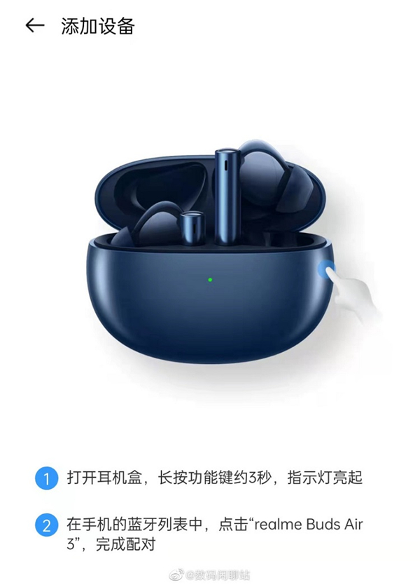 刚官宣没多久,数码博主@数码闲聊站便直接爆出了真我Buds Air3耳机的渲染图以及配置信息。据爆料消息,真我Buds Air3耳机采用的是自研深海降噪技术,支持42dB降噪深度,拥有30小时的续航时长,定制化听感,采用蓝牙5.2连接协议,支持双设备连接,可能会与采用100W快充得到realme GT Neo3同时发布。