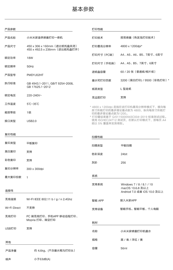 ️小米米家连供喷墨打印一体机支持打印、复印、扫描,一键高精度打印,高清洇字,黑白字体锐化度更高,边缘清晰锐利。