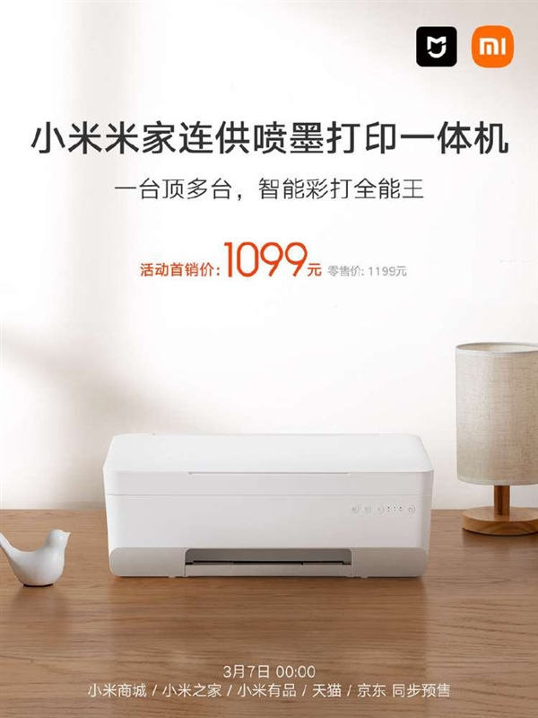 目前,️这款打印一体机已在小米商城、小米有品、小米之家等电商平台上架,售价1199元,首发到手价1099元。