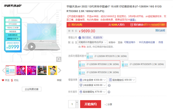 现在,基于12代酷睿的天选air 2022新款独显直连轻薄本已经开始预约了。