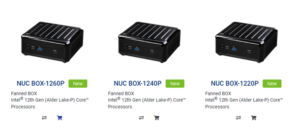 ️华擎NUC 1200 Box系列有三款型号可选,采用的处理器基本功耗均为28W,分别为:NUC Box-1260P(酷睿i7-1260P,4大8小)、NUC Box-1240P(酷睿i5-1240P,4大8小)、NUC Box-1220P(酷睿i3-1220P,2大8小)。