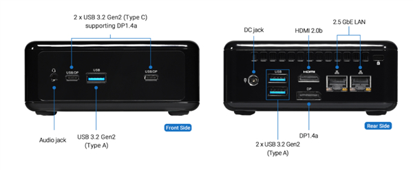 外部扩展性上,NUC 1200 Box系列的面板前部带有3.5mm耳机插孔、2个USB 3.2 Gen2 Type-C、USB 3.2 Gen2 Type-A,后部有2个USB 3.2 Gen2 Type-A、HDMI 2.0b、DP1.4a,和两个2.5GbE LAN以太网口,还支持Wi-Fi 6E、蓝牙5.2。