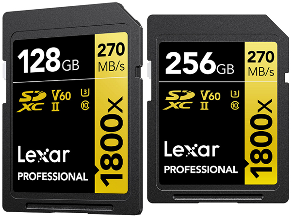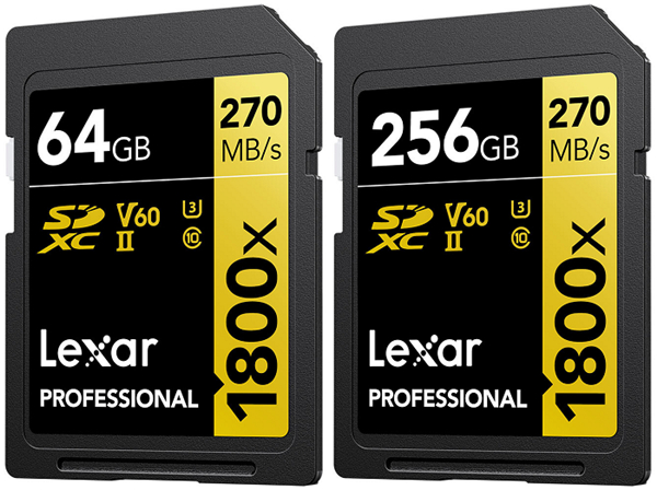 Lexar Professional 1800x SDXC UHS-II Card GOLD 系列存储卡提供了 64 / 128 / 256GB 三档容量选项,且具有防水、耐温、防震、以及避免 X 射线伤害的特性。