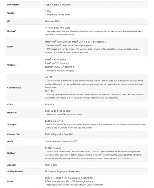 配置方面,三星为 Galaxy Book2 Business 选用了 14 英寸 @ FHD 分辨率的防眩光显示屏,以及高达 1TB 的存储容量。