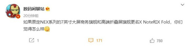 近日网传vivo NEX系列两款机型将该名X系列,折叠屏改名为X Fold,7英寸直板机改名为X Note以突出大屏生产力的表现。