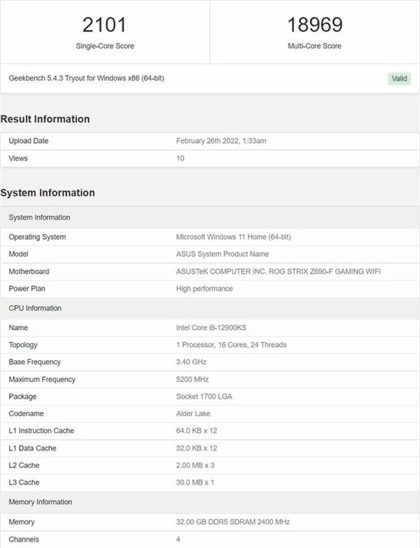 据BenchLeaks消息,英特尔在CES上发布的i9-12900KS现已现身Geekbench跑分平台,性能有了不错的提升。现在,我们可以看下其跑分,英特尔酷睿 i9-12900KS在单核测试中为2101分,在多核测试中为18,969分。