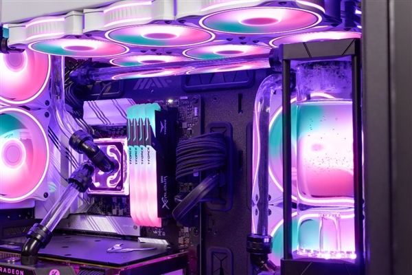 同时,前面板使用了ARGB钢化玻璃灯条,呈现全新的ARGB灯效,内部还有一块Infinity Mirror镜面饰板。