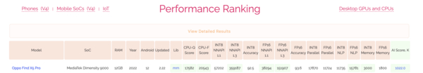 当然,这款产品最令人兴奋的点,毫无疑问便是天玑9000在终端落地后的首秀。在OPPO Find X5 Pro天玑版发布后不久,Ai-BenchMark便在其官网放出了最新的智能手机AI跑分排名,OPPO Find X5 Pro天玑版以总分102.2万分的成绩高居榜首,领先第二名接近一倍的成绩。能够帮助OPPO Find X5 Pro天玑版冲上Ai-BenchMark榜单第一,天玑9000功不可没。