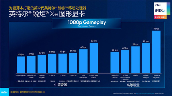 它们都搭载了Xe锐炬核显,在1080p分辨率下,轻量级3A大作用中等画质不少游戏的帧率都在50fps附近,《GTA5》这种老牌游戏甚至能达到82fps,已经是相当流畅的画面了,至于电竞游戏方面,即使开启高等画质基本上也可以满足60fps的流畅画面,《英雄联盟》甚至能跑到115fps。