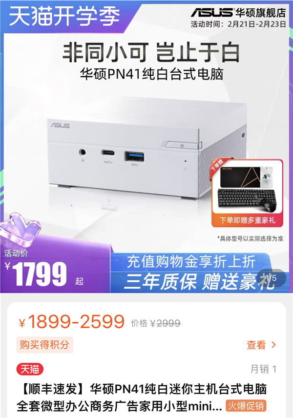 2 月 21 日消息,近日华硕官方上架了新款的 PN41 迷你主机,这款主机的体积很小,并搭载了奔腾 N6005 处理器。