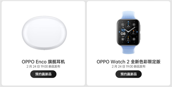 2 月 17 日消息,OPPO 官宣将于 2 月 24 日举行新品发布会,将推出 Find X5 / Pro 系列旗舰手机,还将发布 OPPO Enco 旗舰耳机,以及 OPPO Watch 2 全新色彩限定版。