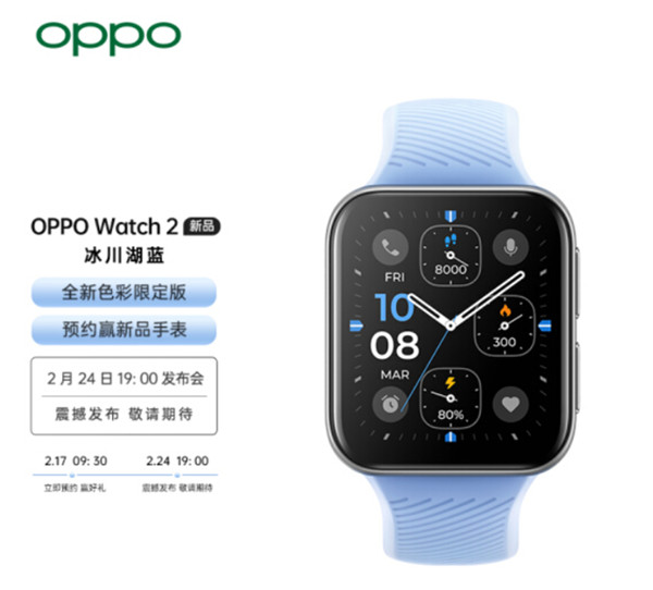 而 OPPO Watch 2 全新色彩限定版也已经开启预约,该配色名为“冰川湖蓝”。