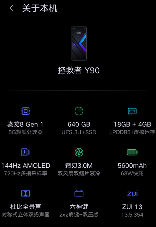 其他方面,拯救者 Y90 搭载 5600mAh 电池,支持 68W 快充、杜比全景声,配备 2*2 肩键,搭载 ZUI 13 系统。