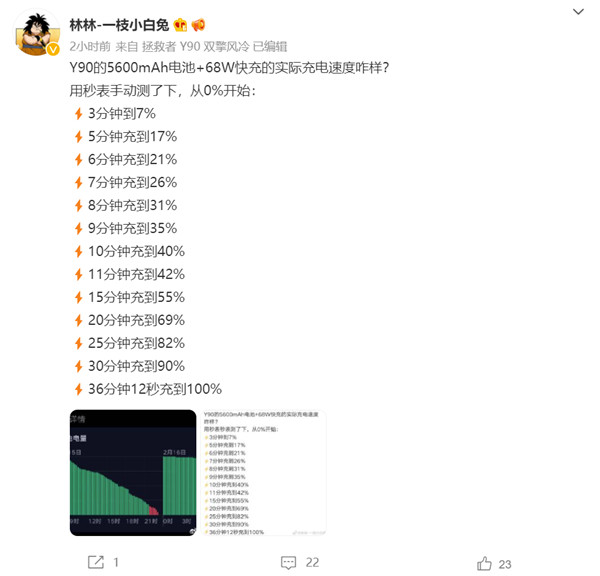 曝光的 Y90 从 0% 开始的充电时间如下: