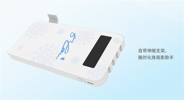 而且在移动电源侧面带有一个巧妙设计的“L”形伸缩支架,平时收纳状态不会干预便携性,需要使用时拉出可以充当手机支架,手机倾斜摆放边充边看电影。