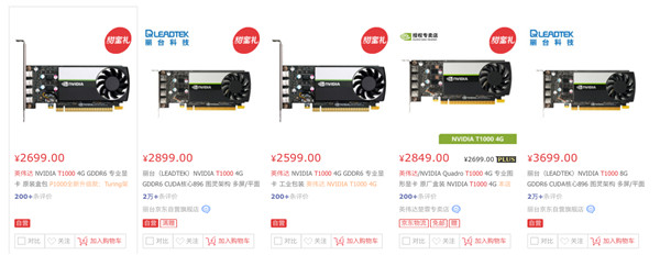 英伟达 T1000 入门级专业显卡也已在国内上市,4GB 版本售价 2599 元起,8GB 版本可达 3699 元。
