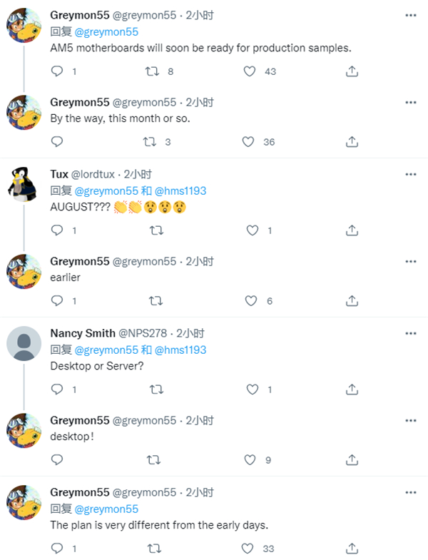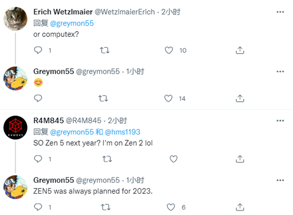 根据曝料专家Greymon55分享的信息,️Zen4来得会比预期更早一些,5月24-27日的台北电脑展上就会宣布,第三季度初上市。