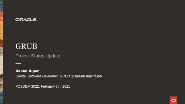 在上周末的 FOSDEM 2022 大会上,来自 Oracle 的 Daniel Kiper,例行介绍了与 GRUB 引导加载程序开发相关的年度工作进度更新。作为一款业内领先的开源引导加载程序,我们还知晓了它在今年的最新成就和相关计划 —— 比如 GRUB 2.12 将很快到来,并将持续致力于提升引导的安全性。