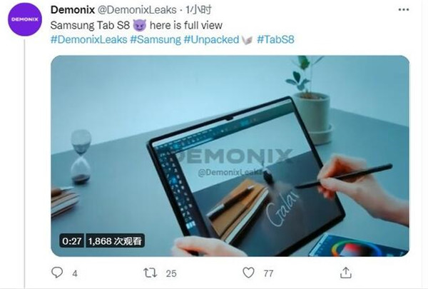 据报道,三星Galaxy Tab S8系列平板电脑将于明天同Galaxy S22系列一同发布,现在,外媒@Demonix曝光了三星Galaxy Tab S8的真机上手视频,主要展示了外观设计及手写笔和键盘模式下的使用体验。