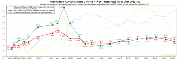 但 3DCenter.org 显示,这种下跌不仅仅发生在二手市场上出售的 GPU,也发生在德国零售商那里。