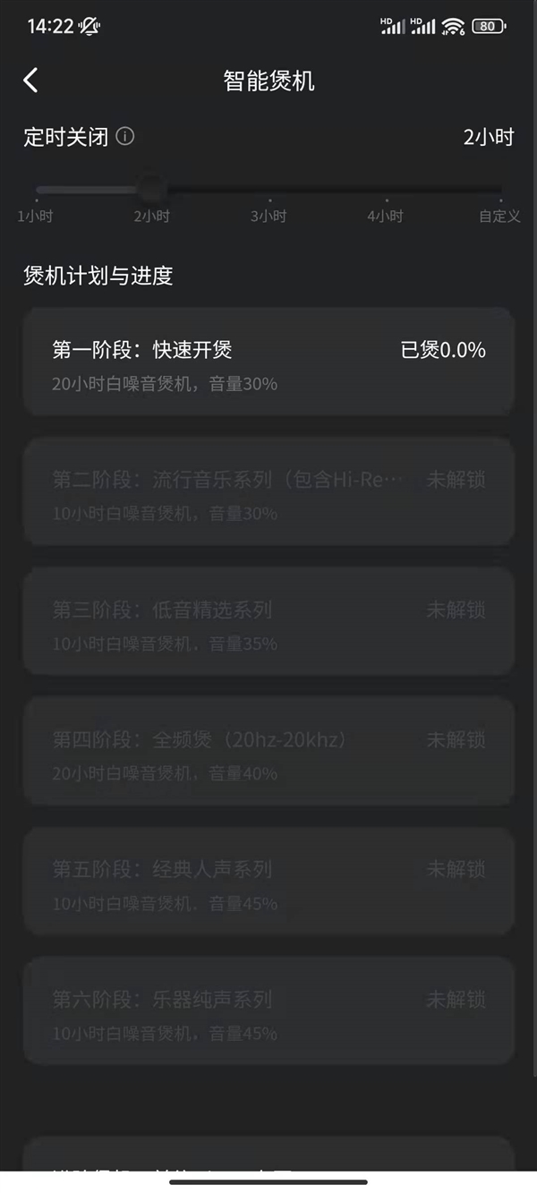 据悉,智能煲机功能目前支持众多品牌的热门耳机,️整个过程包含六个阶段共计80小时,涵盖20小时白噪音、流行音乐、低音、全频扫频声音等。期间还会每2小时停止音频输出5分钟,防止设备过热。