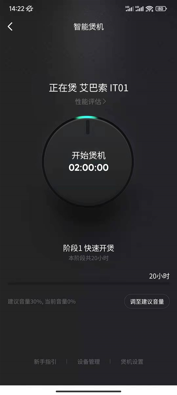另外,在煲机设置中还可选择单次煲机的时长(定时关闭),最高可选择20小时/次。并可通过 “性能评估”帮助你更直观的了解到自己的设备在“当前阶段”的进步。