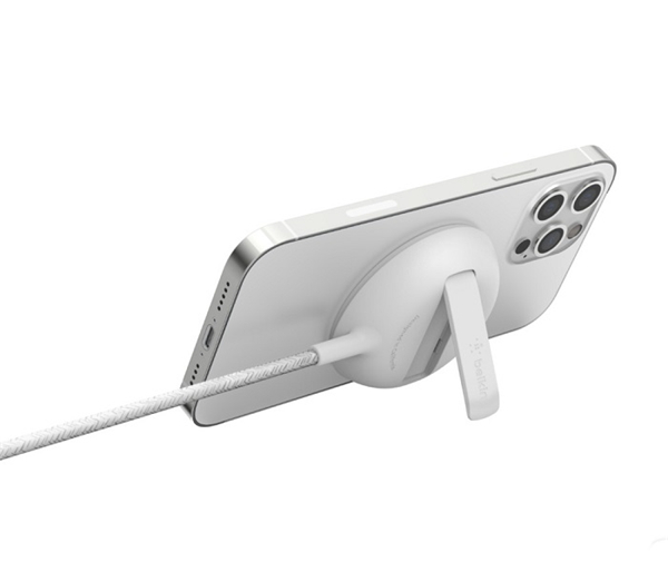 作为一款便携式无线充电板,贝尔金为 Boost Charge Pro 提供了 MagSafe 磁吸兼容性,辅以最高 15W 的充电功率。