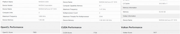 曝光数据称,GT 1010 是基于 Pascal 架构的显卡,拥有与 GT 1030 相似的 GP108 GPU,基于 14 nm 工艺。