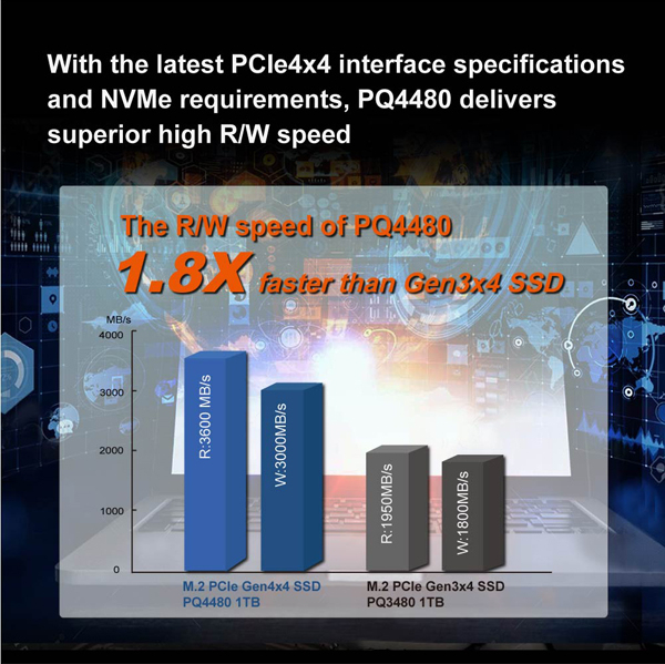 容量方面,PQ4480 系列可选 250GB / 500GB / 1TB 三档,且顺序读速均为 3600 MB/s 的水平。