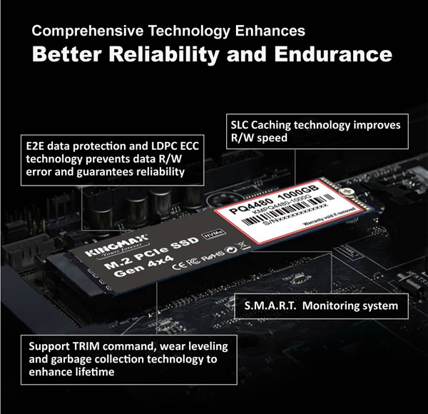 耐用性方面,250GB / 500GB / 1TB 版本的标称写入量为 150 / 300 / 600 TBW,且原厂提供 3 年有限质保。遗憾的是,Kingmax 尚未宣布 PQ4480 系列 SSD 的定价。