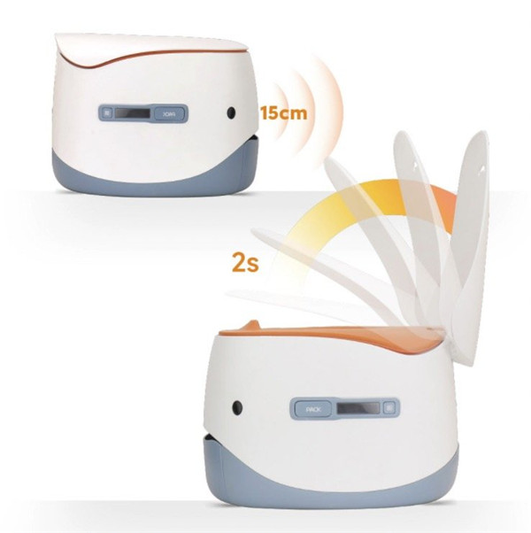2s开合15cm适距感应,如厕不用等。翻盖功.能后设独立童锁开关,以免宝宝过度玩耍、宠物误触、节省电池能耗。