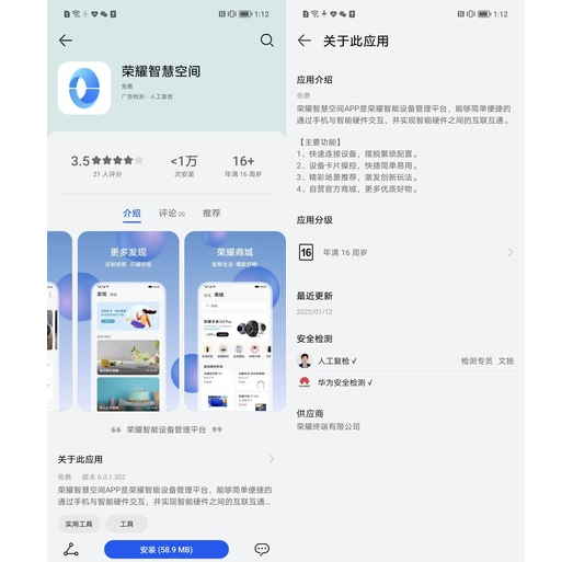 根据应用市场显示,荣耀智慧空间APP具备四个主要功能:一、快速连接设备,摆脱繁琐配置;二、设备卡片操控,快捷简单易用;三、精彩场景推荐,激发创新玩法;四、自营官方商城,更多优质好物。在APP内,底部分为“首页”、“场景”、“发现”、“我的”四大功能版块,点击右上角的“+”则可以添加设备或创建场景。从整体的操作逻辑来看,与原有的智慧生活APP保持了一致,能够很好地承接用户体验。