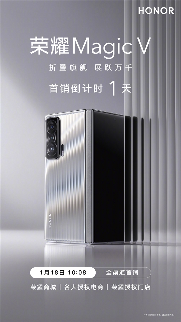 1月10日,全球首款骁龙8折叠屏旗舰——荣耀Magic V正式发布,经过多日预售,️荣耀Magic V将于1月18日10:08正式开售,提供12GB+256GB、12GB+512GB两款配置,售价分别为9999、10999元。
