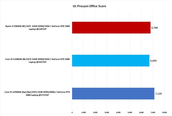 UL Procyon Office是办公类测试,这次没有拉开差距,对比上代、竞品分别高出6.5%、5.0%。