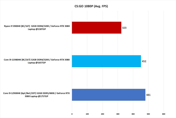 游戏测试中,得益于更高的功耗释放,i9-12900HK全程近乎碾压,领先上代最多12%,领先竞品则最多近乎50%。
