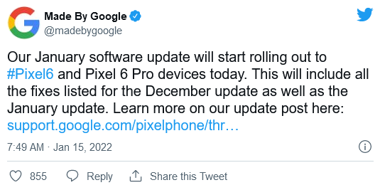 正如Google承诺的那样,Pixel 6和6 Pro的更新终于在今天(1月14日)开始推出,并应在未来一周内适用于所有Pixel 6设备。同时,1月份的更新早在1月4日就开始向旧版Pixel用户推出。