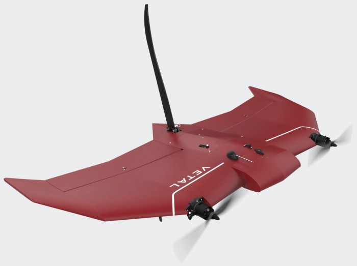 由泰国 HG Robotics 公司打造的双螺桨 Vetal,专为农业测量和常规监视等任务而设计,具有 1300 mm(4.3 英尺)的翼展和泡沫芯 / 碳纤维外壳机身。